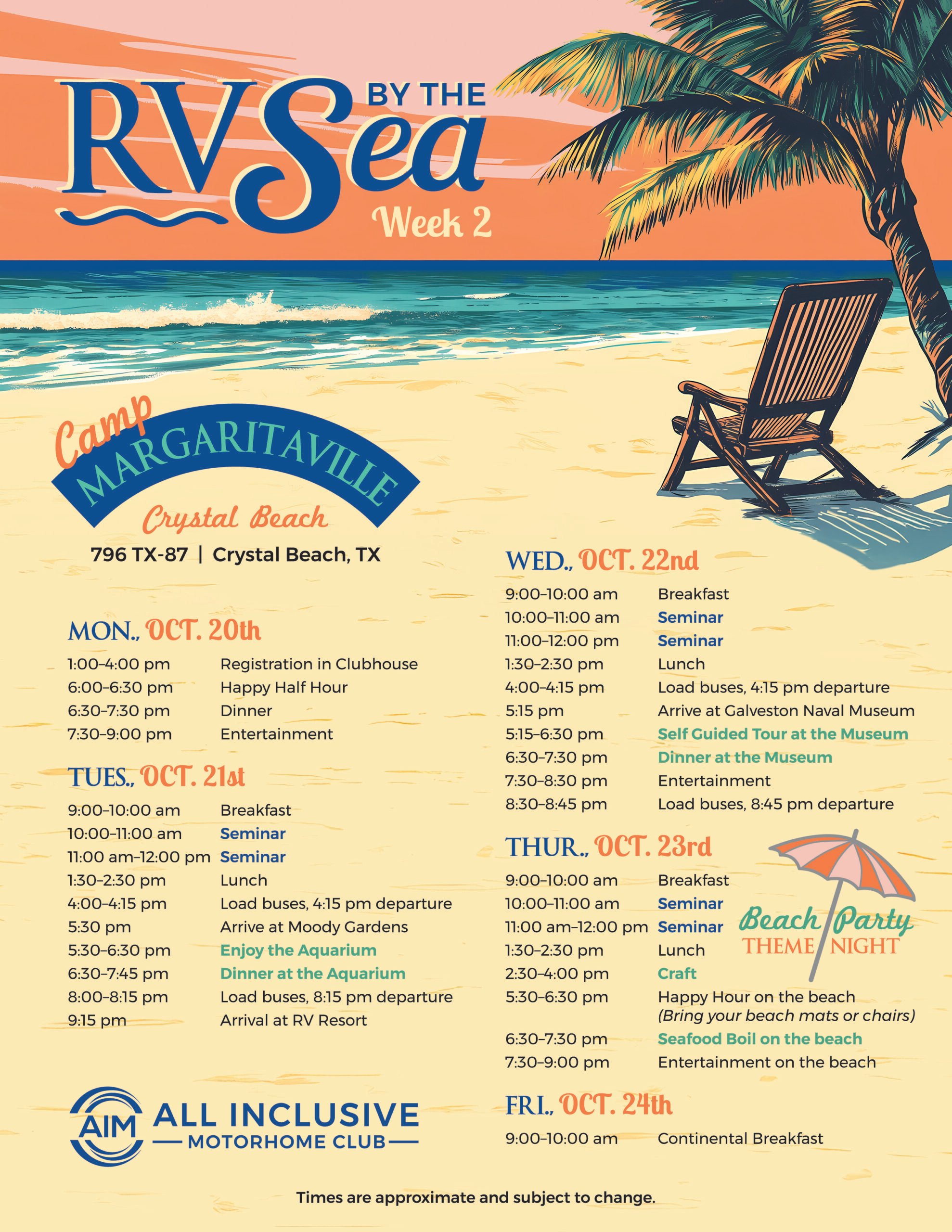 Each AIM Club Rally is virtually ALL inclusive. Here’s what you can look forward to!